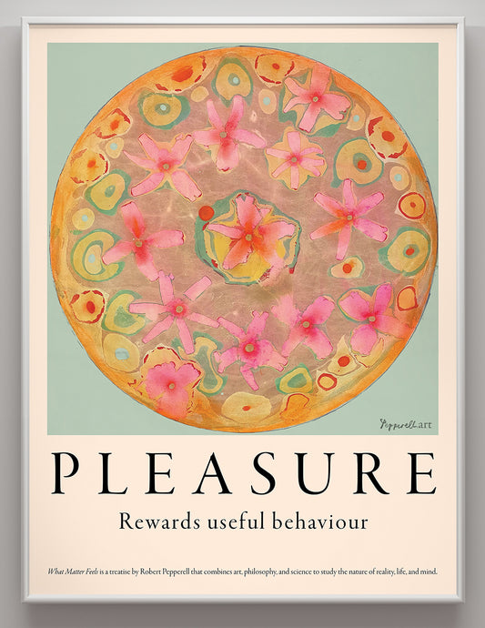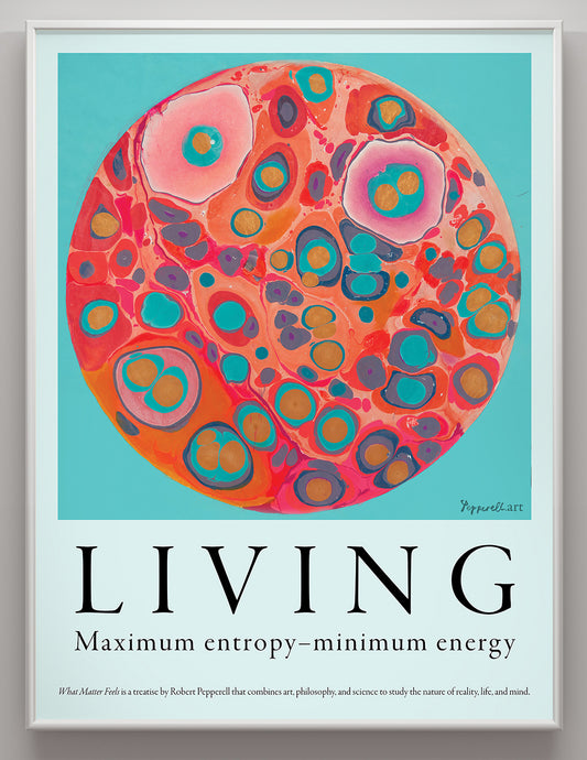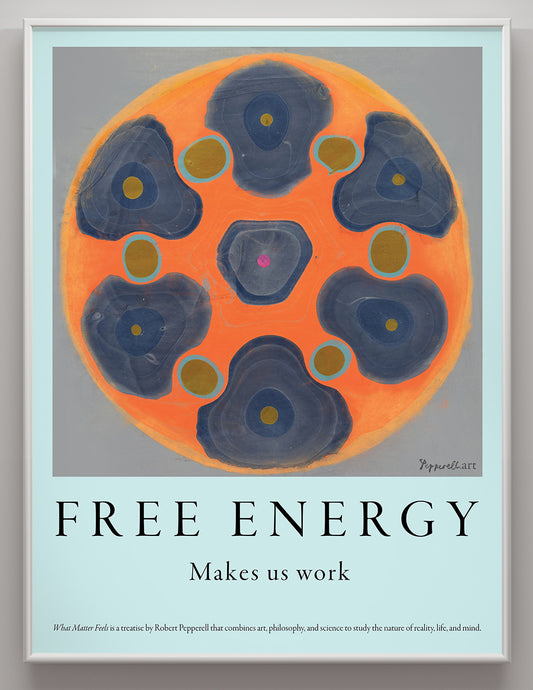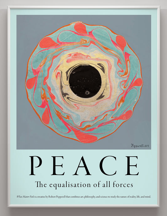 A second purpose of the posters is to present some of the key concepts set out in What Matter Feels succinctly and vividly. But they are not designed to give an unambiguous message in the way posters traditionally are. Rather, they can suggest multiple and often subtle meanings that emerge only through prolonged contemplation. For this reason, they are meant to be lived with as works of art rather than glanced at and passed by, as commercial posters often are.